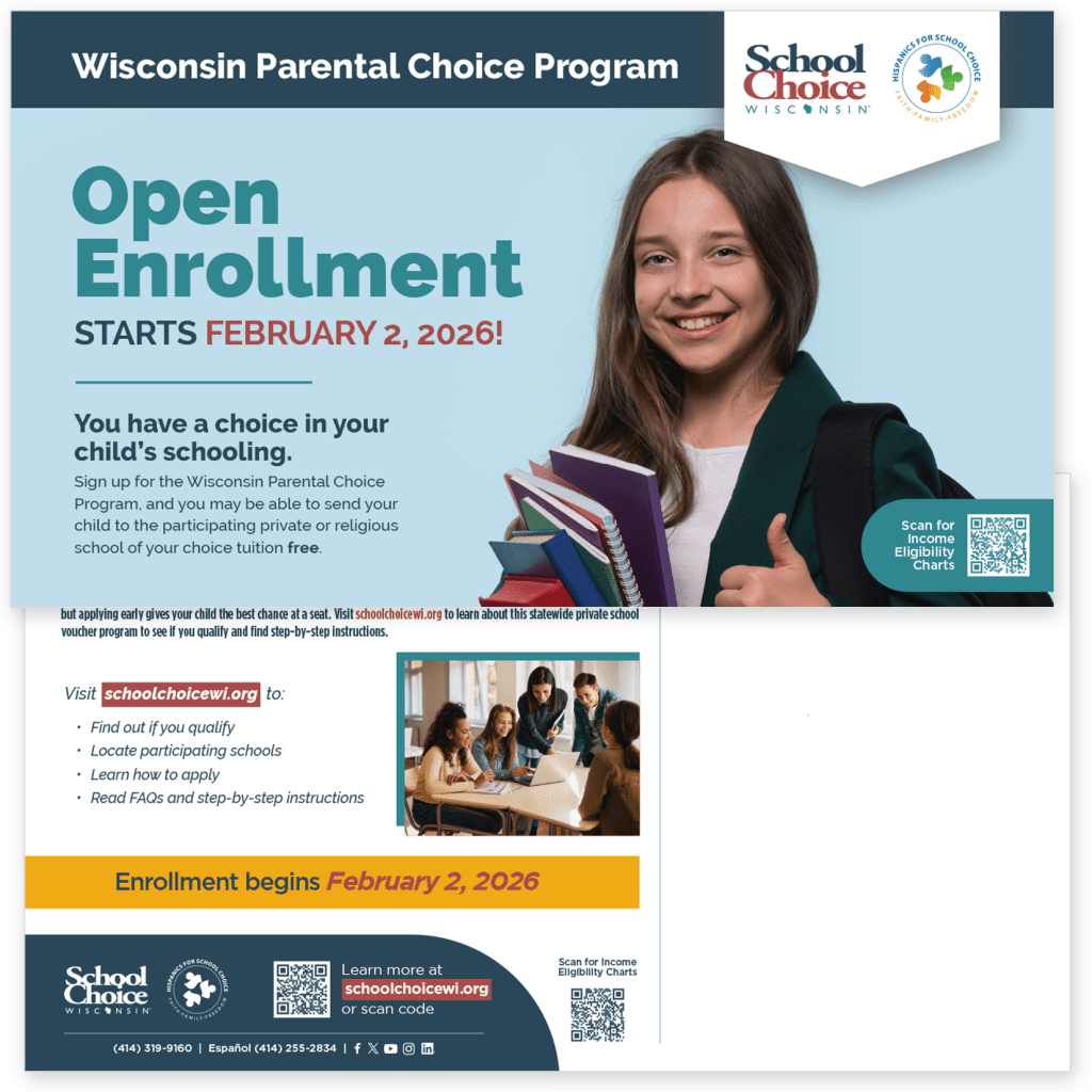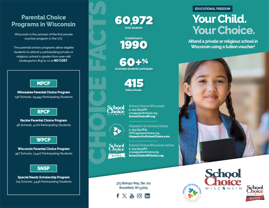 Promote the Wisconsin School Choice Program at your school with these ready-to-use marketing materials, including print material and social media graphics. Find more School Choice materials on our brochures page.