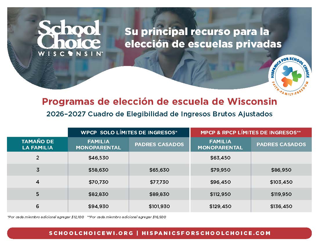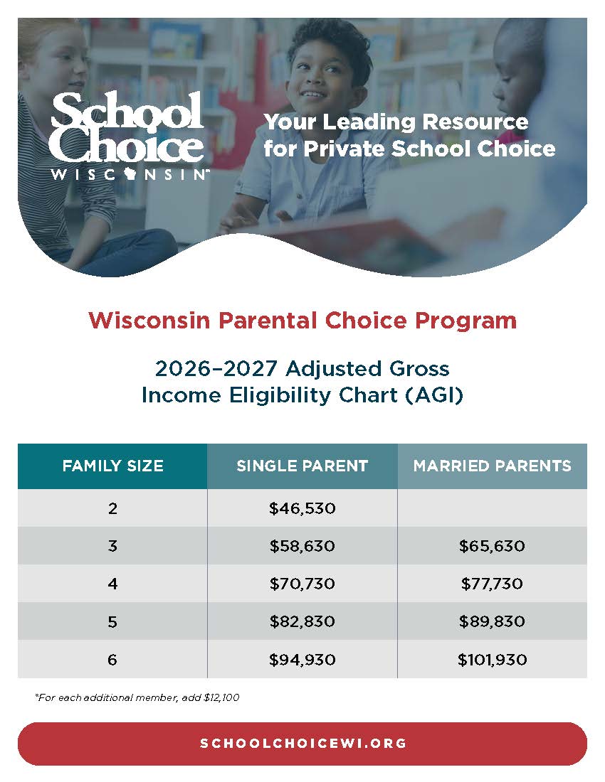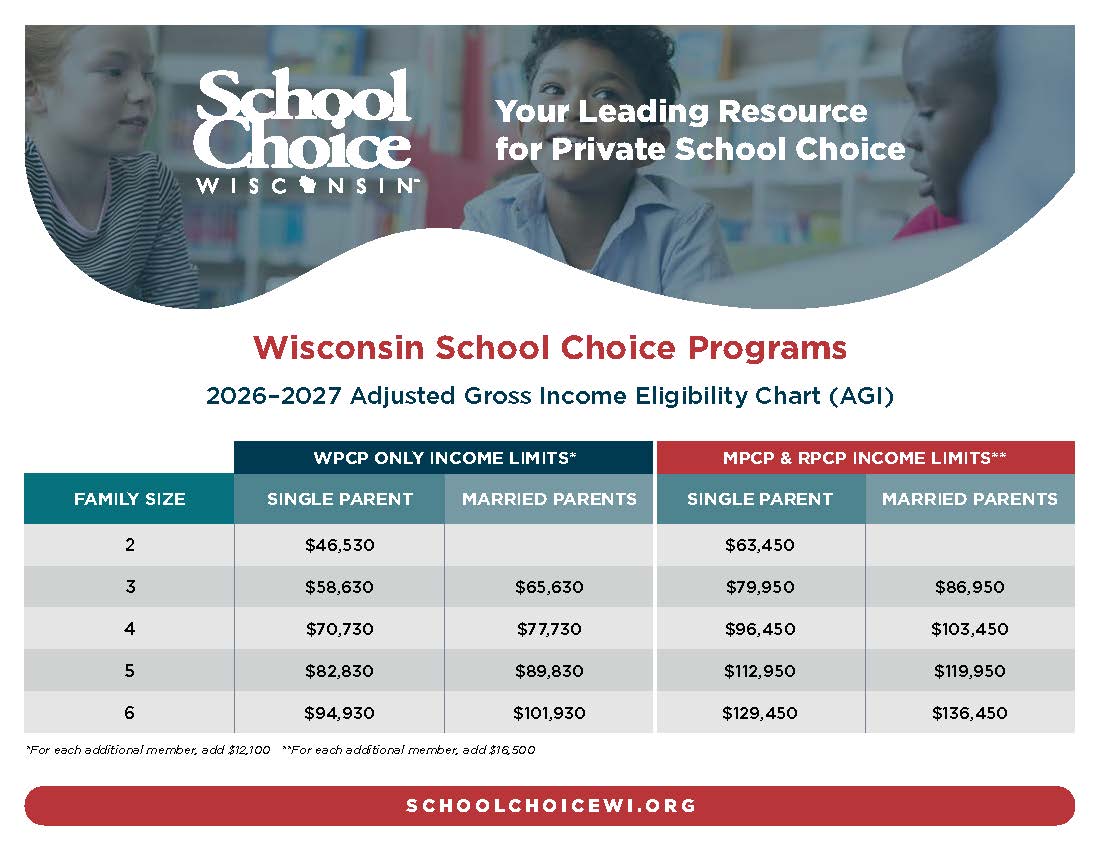 Income eligibility for Wisconsin’s school choice programs vary and adjusted each year. Below are the current income eligibility guidelines for the 2025–2026 school year.